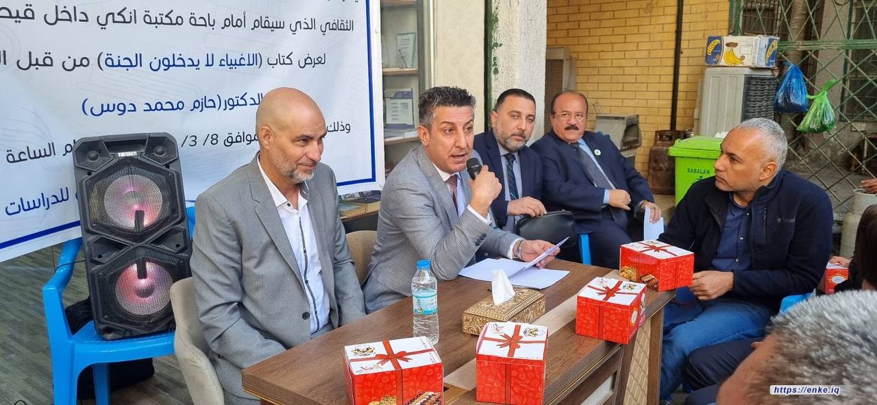 صالون إنكي الثقافي الذي نظمته مؤسسة إنكي للدراسات والبحوث، شهد مبادرة استثنائية في باحة شارع المتنبي في 8 مارس 2024. إنطلق الصالون بتقديم مؤلف "الأغبياء لا يدخلون الجنة" للدكتور حازم دوس، حيث قاد مدير قسم النشر في المؤسسة الدكتور عمار البهادلي جلسة حوارية تفاعلية. أختتمت الفعالية بتعبير الحضور عن سعادتهم بالصالون الثقافي الذي أضاف جوًا ثريًا لأمسيات المتنبي.