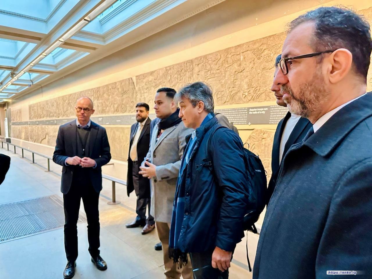 The delegation began its tour with a visit to the British Museum, where they were received by Mr. Paul Collins, Head of the Middle East Department, and explored the section dedicated to Iraqi civilization. Following this, the delegation visited the Middle East Centre at the London School of Economics, engaging in discussions on climate change issues in Iraq and other academic topics. Professor Michael Mason participated in the discussion, presenting an overview of the environmental challenges facing Iraq.
